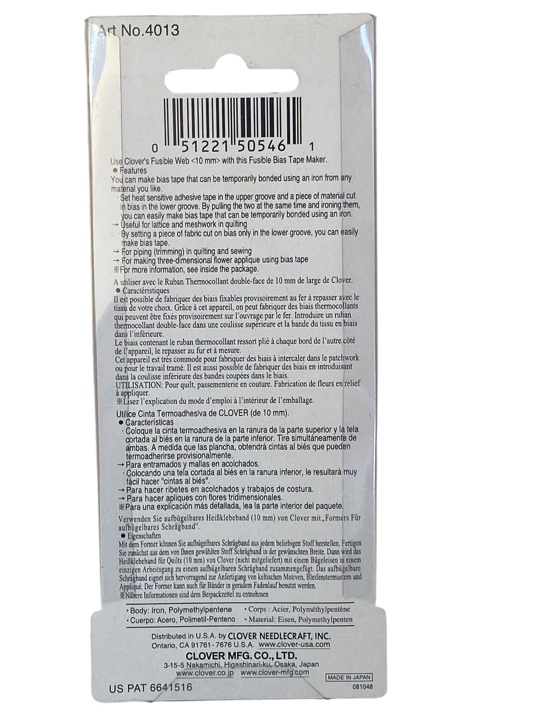 - Use Clover's Fusible Web (10mm width) with this Fusible Bias Tape Maker.